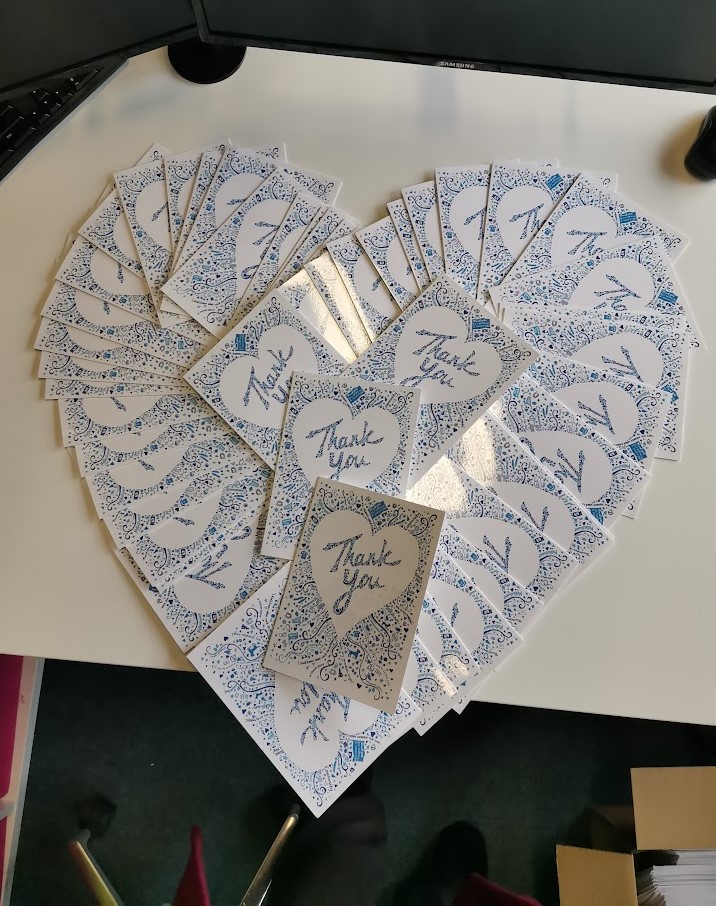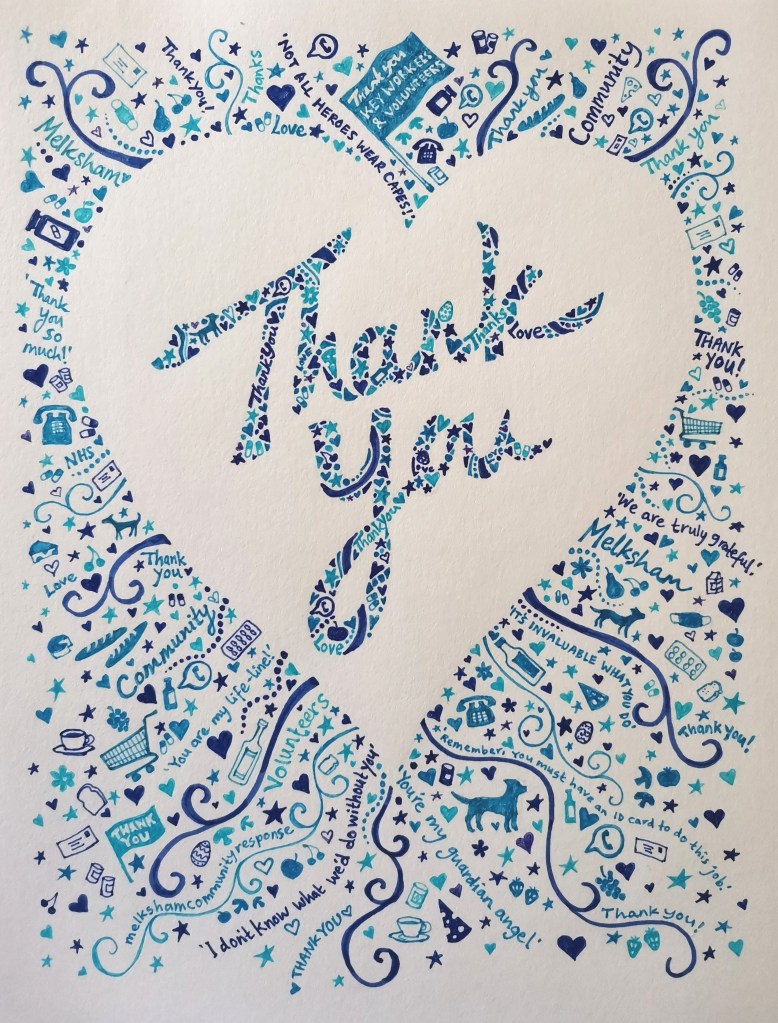 Rich and Sue did our shopping when we were shieldingThank you card for volunteers who delivered shopping, prescriptions, dog walks and friendly phone calls during lockdown600 cards for volunteers of the Melksham Community Response in lockdownRitaJackieOur friend Helm performed live ‘Lockdown Sessions’ three times a weekHenryThanks to the volunteer judges of the Melksham in Bloom competitionPaulineDadCommission for a friend’s Mum’s birthdayRita again GianniJack likes Gin šGwynethHappy BirthdayJack again