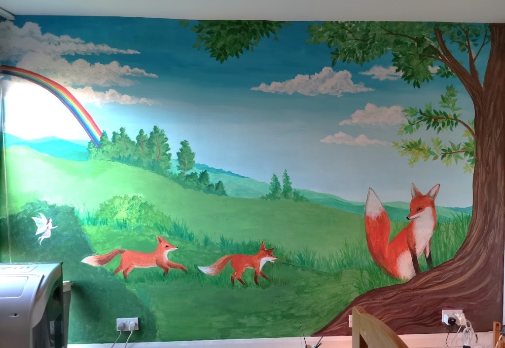Cleeve House painted for a couple who held their wedding at the venueA pair of my favourite orange tip butterflies, which only a few people will recognise as a gorgeous gay coupleNew Zealand waterfall as a gift for my NZ family who hosted usCrackington Haven painted for my Cornwall family who love this beachDouble Cone peak of the Remarkable Mountains in New ZealandMural painted for my goddaughter who wanted a fox family to represent her ownDeadpool for my loveQuick watercolour before he woke upBirthday present for a Bowie fanCommission of another Bowie when someone saw the other oneFor my teenage friend who loves owls.